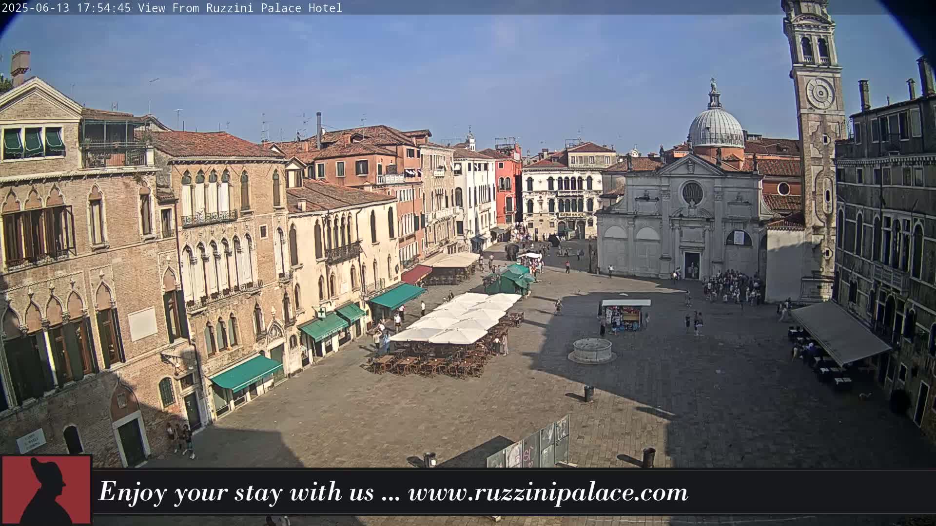 Live webcam footage of the picturesque Campo Santa Maria Formosa in Venice, Italy. Watch the bustling square and iconic surroundings from the vantage point of the Ruzzini Palace Hotel.