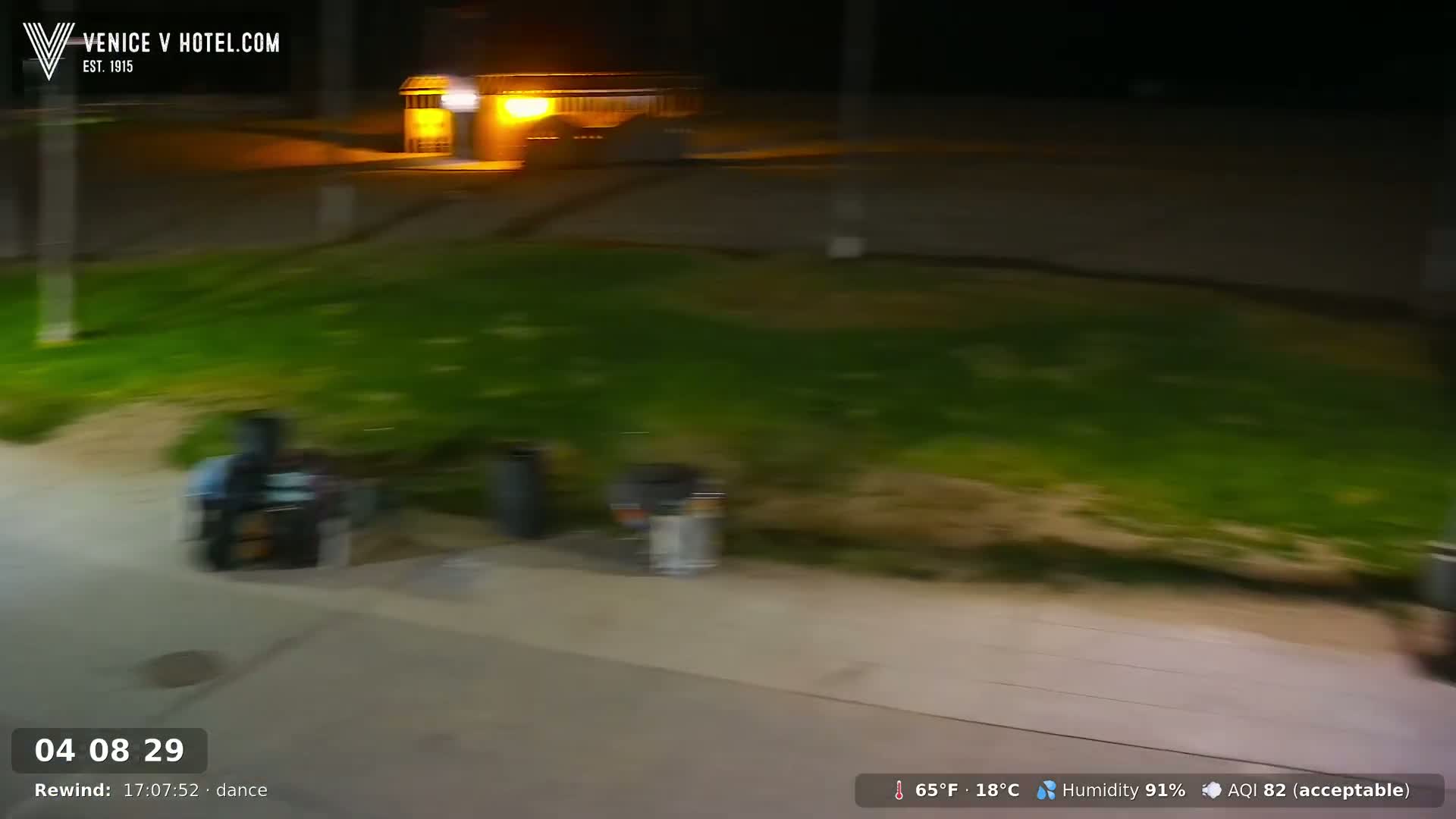 Live footage of Venice Beach, California from Venice V Hotel. Experience the iconic beach with sights and sounds. Watch and enjoy the beautiful scenery.
