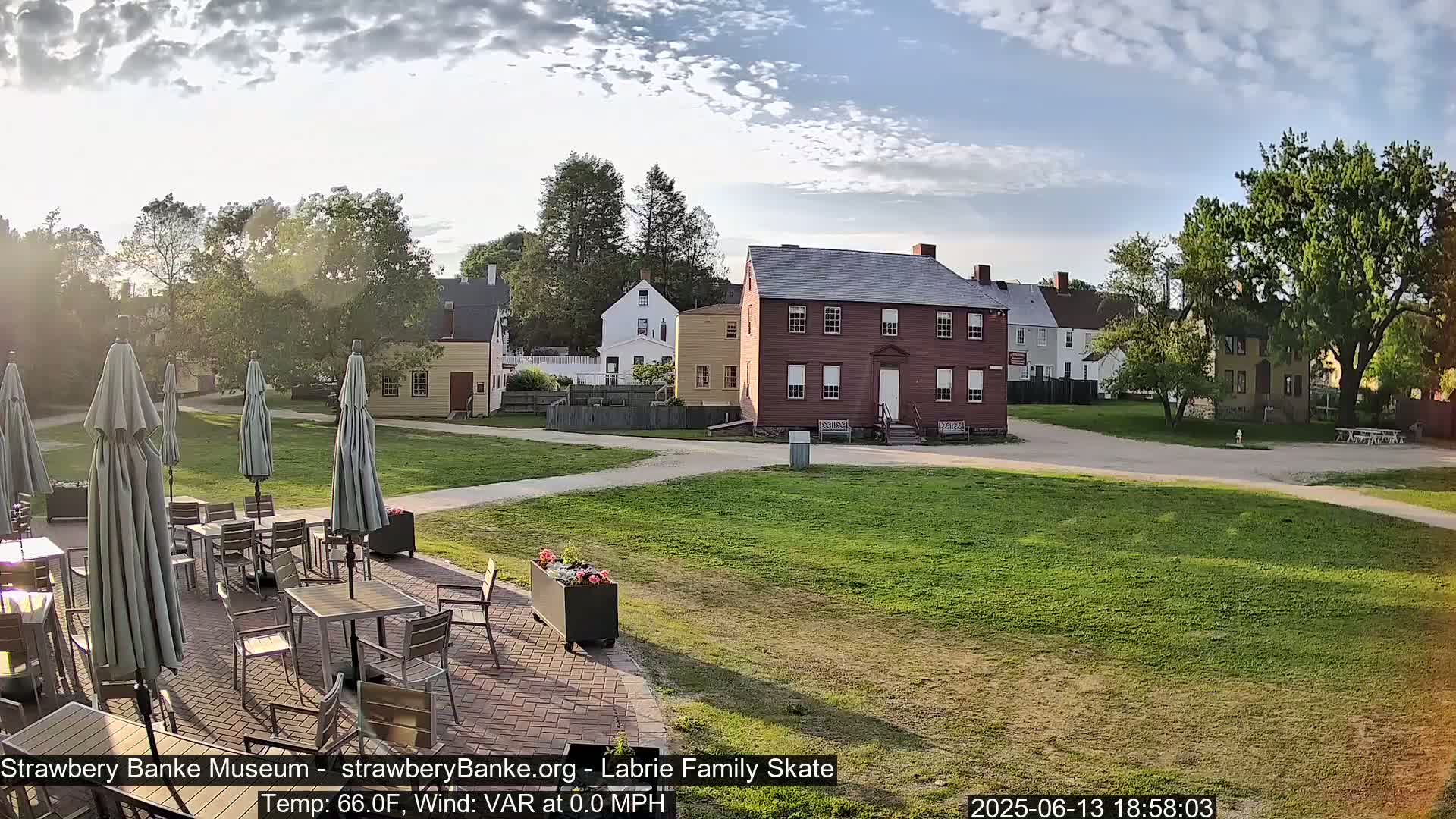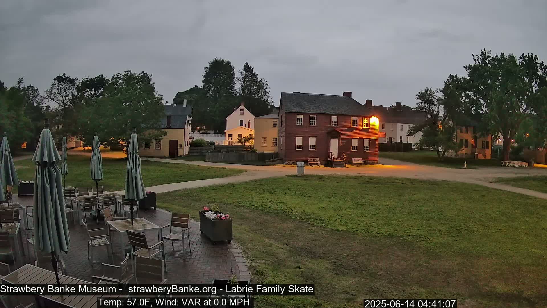 Watch outdoor ice skating in Portsmouth, New Hampshire. This is a live view of the ice-skating rink at Strawbery Banke, which is open to the public.