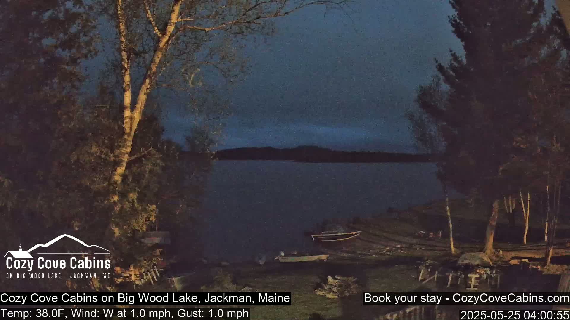 Cozy Cove Cabins, Wood Pond Live Cam - Jackman, Maine,  USA
