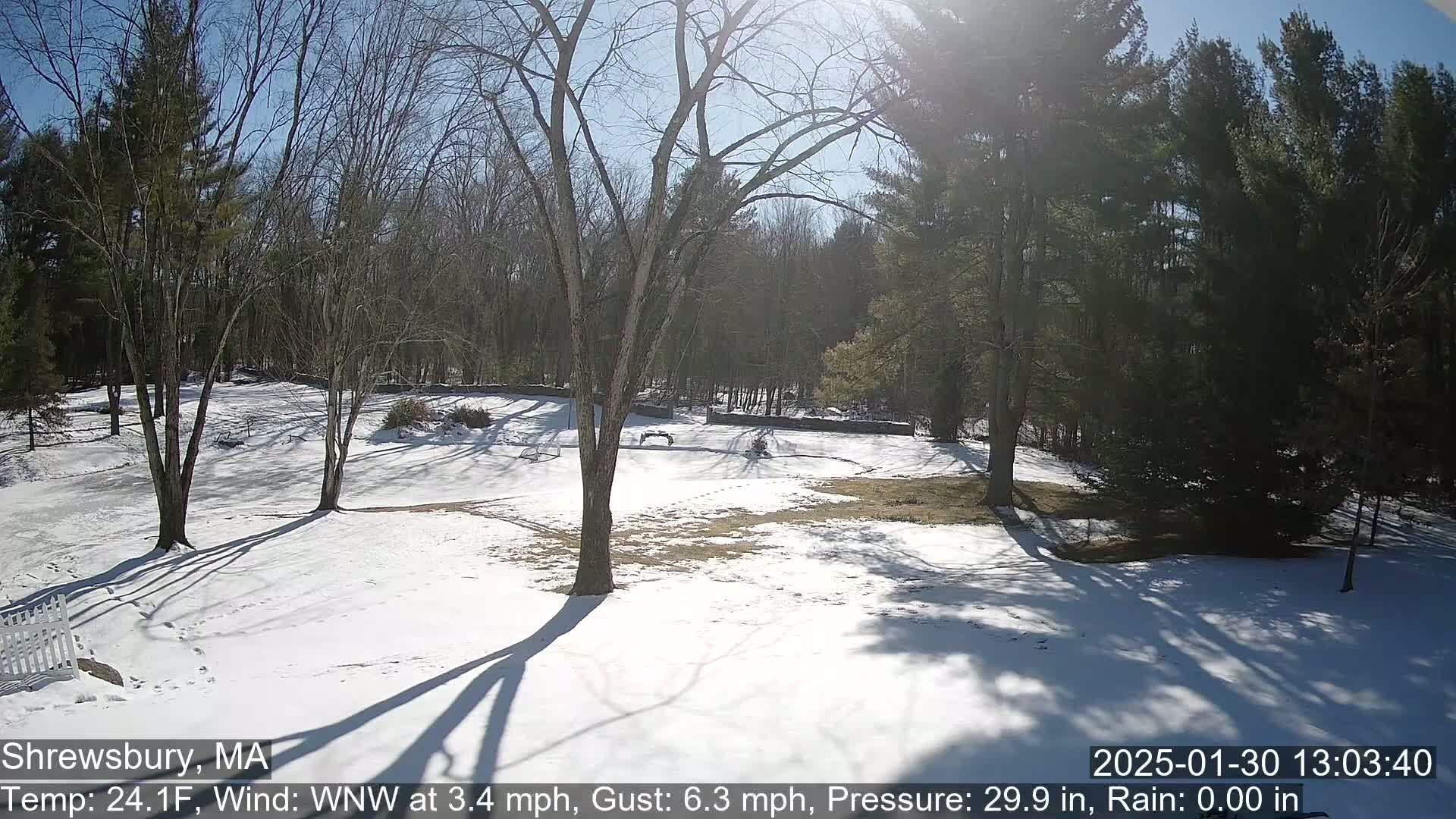 A tranquil pond reflects leafless trees on a sunny day with a light north-northwest wind.