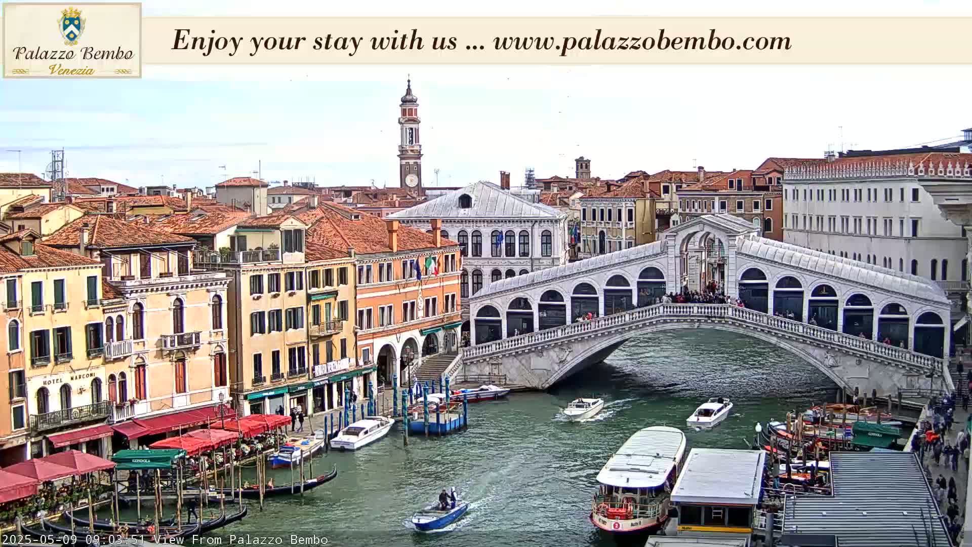 Venice, Rialto Bridge in Grand Canal Live Cam - Venice, Veneto, Italy