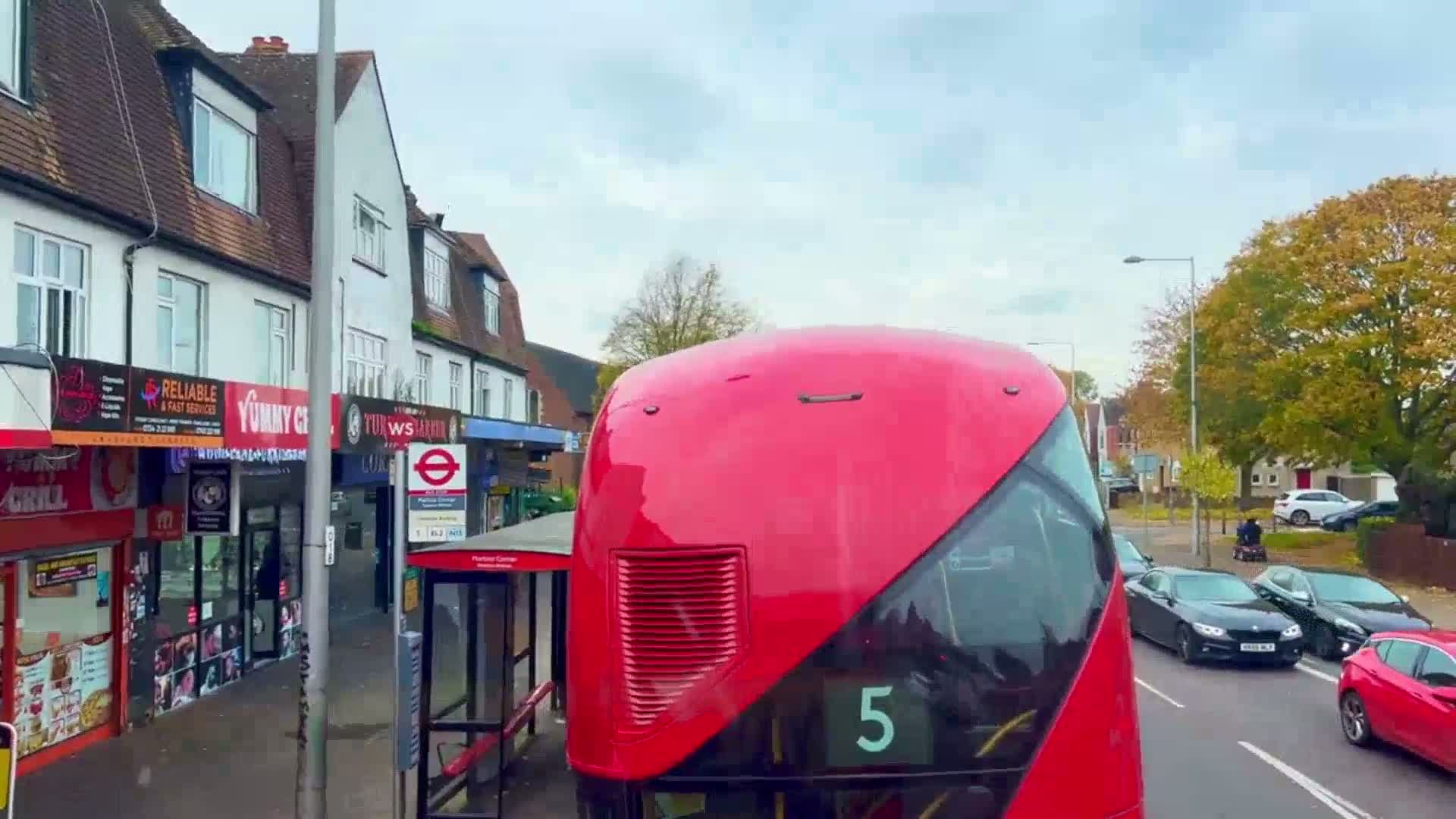 Several double-decker buses are parked in a depot on an overcast day, with a white van and a small car visible in the foreground.