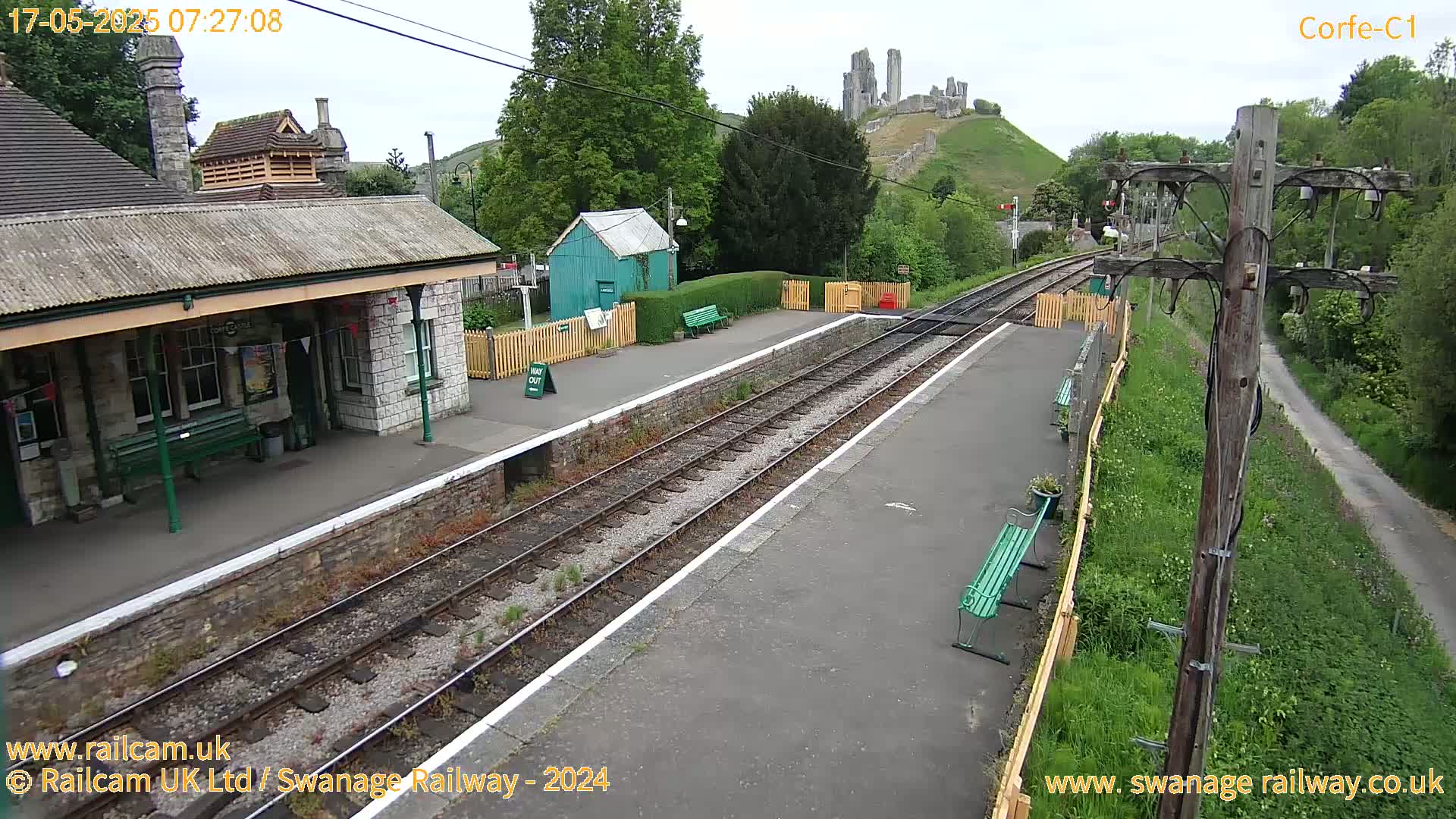 Corfe Castle View & Corfe Railway Station Live Cam - Purbeck, Dorset, South West, England, United Kingdom