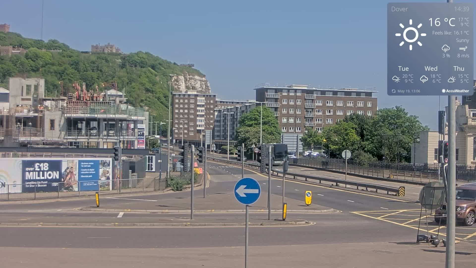 Dover Castle & A256 & A20 Junction Live Cam - Dover, Kent, South East, England, United Kingdom