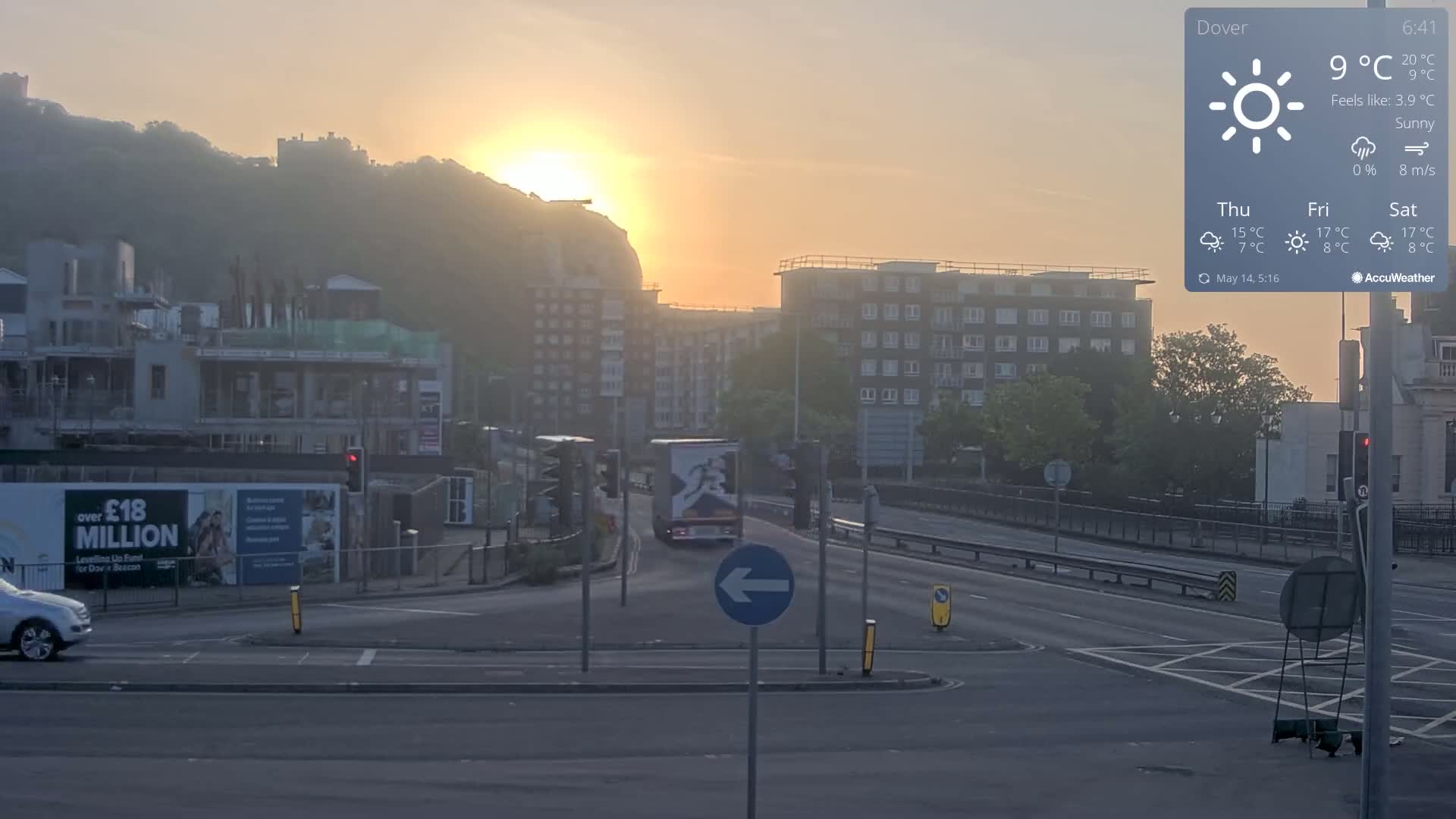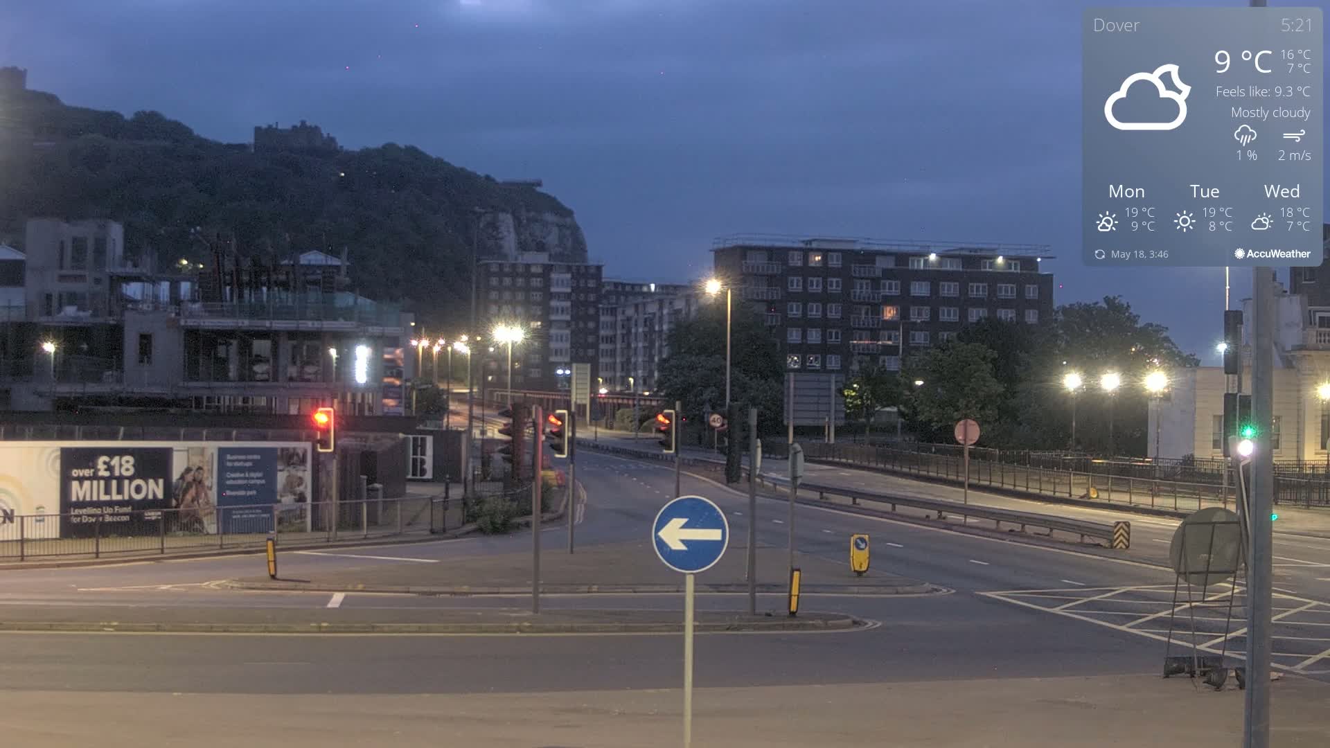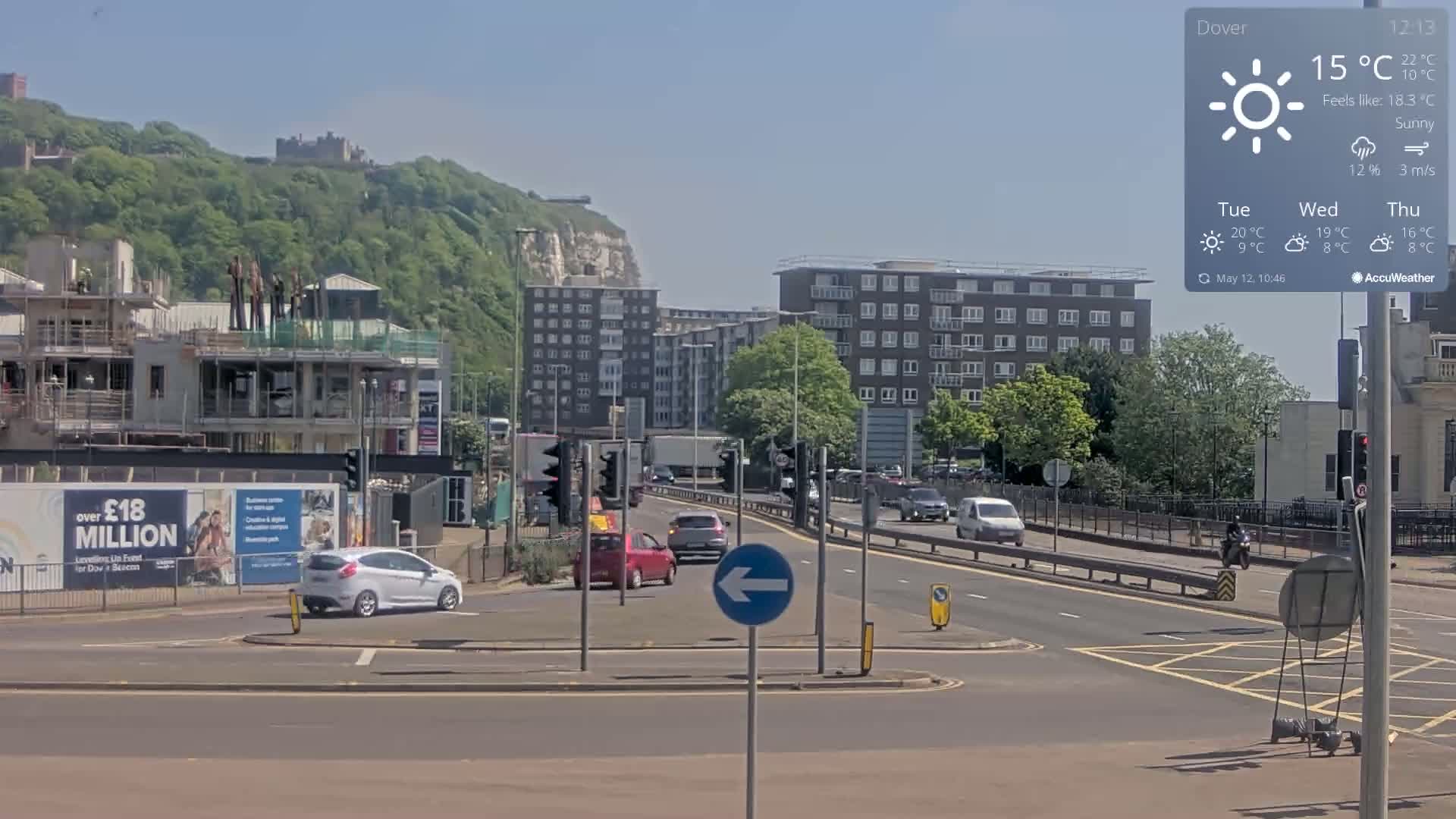 Dover Castle & A256 & A20 Junction Live Cam - Dover, Kent, South East, England, United Kingdom