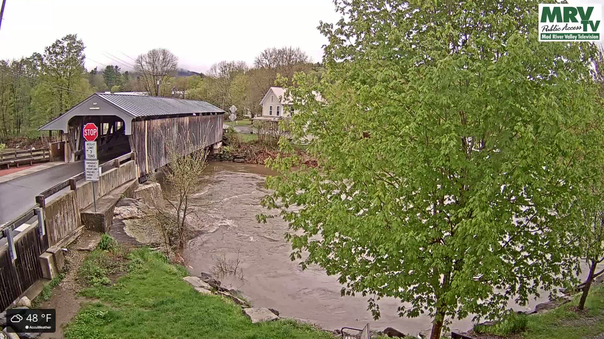 Waitsfield, Mad River Valley Great Eddy Covered Bridge Live Cam -Waitsfield, Washington County, Vermont, USA
