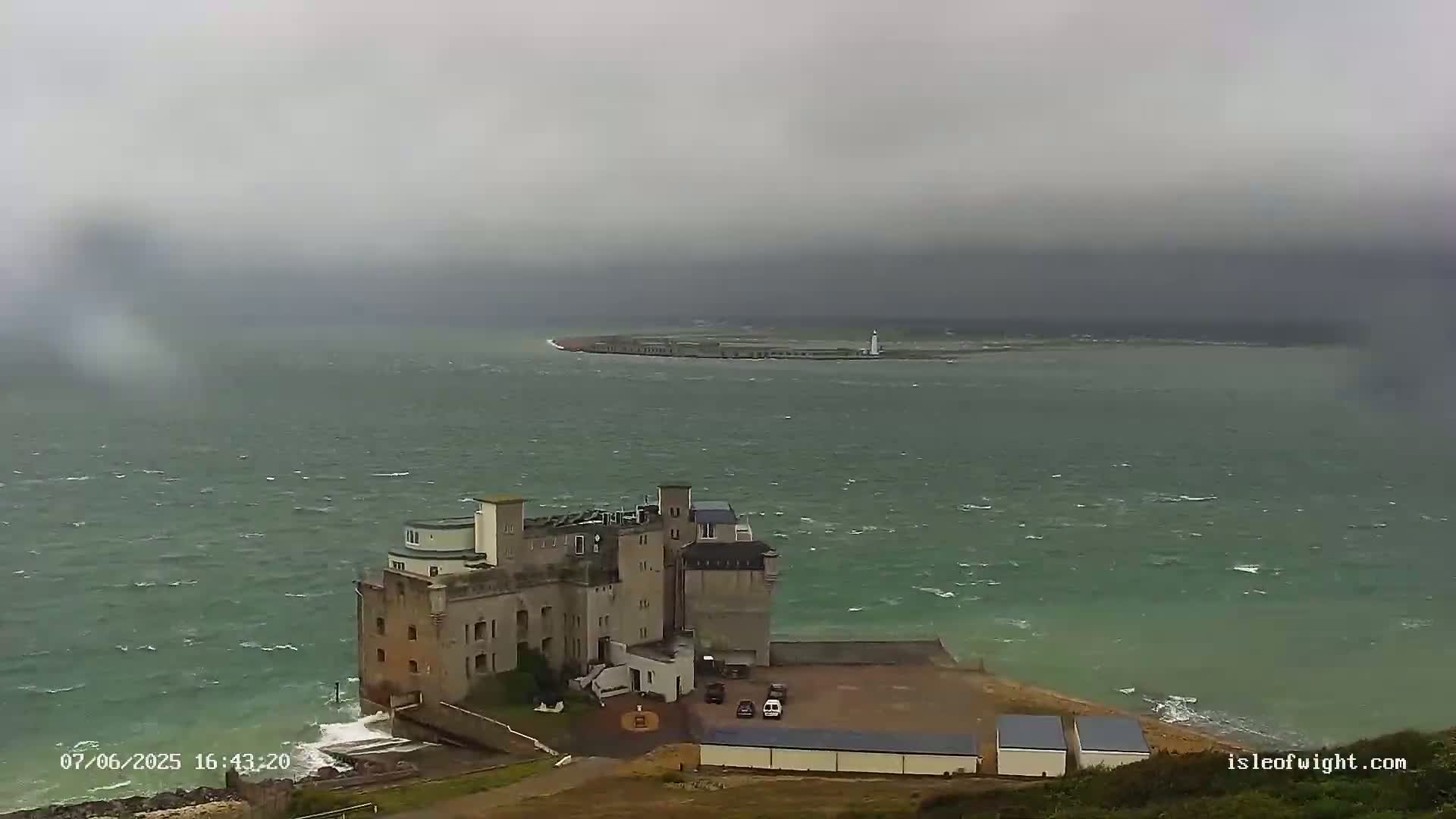 Freshwater, Colwell Bay, Hurst Castle & Hurst Point Lighthouse Live Cam - Freshwater, Isle of Wight, South East, England, United Kingdom