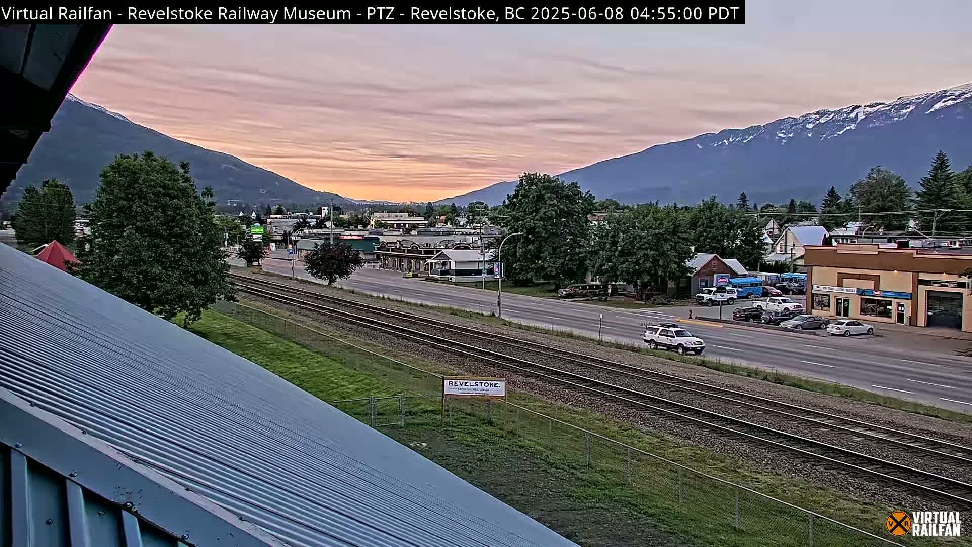 Revelstoke City & Canadian Pacific Railway Railroad Crossing Live Cam - Revelstoke, Columbia-Shuswap, British Columbia, Canada  PTZ | Virtual Railfan LIVE ! 2025-03-18 12:14