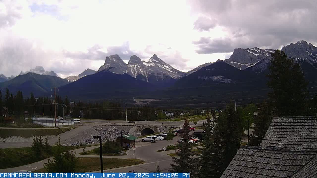 Canmore, Three Sisters Mountains View from Canmore City Live Cam - Canmore, Alberta's Rockies, Alberta, Canada