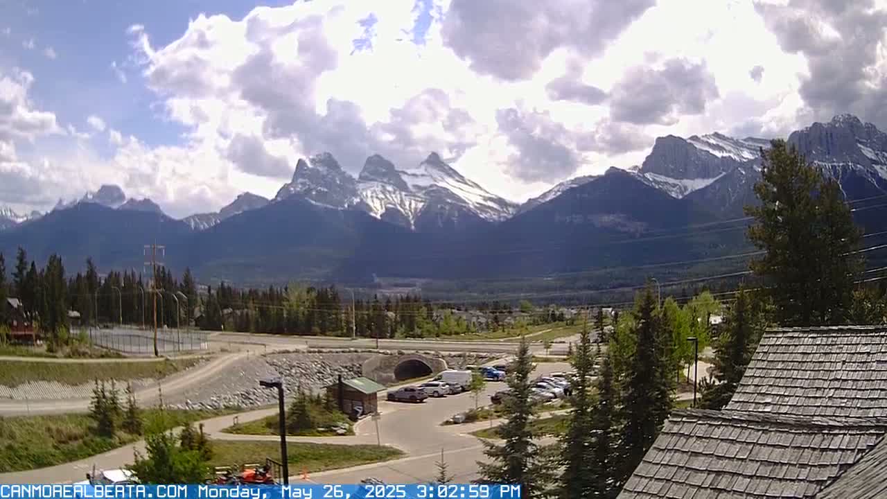 Canmore, Three Sisters Mountains View from Canmore City Live Cam - Canmore, Alberta's Rockies, Alberta, Canada