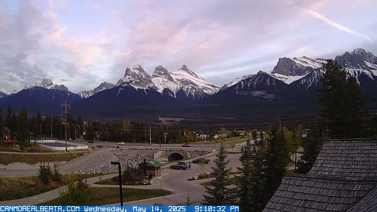 Canmore, Three Sisters Mountains View from Canmore City Live Cam - Canmore, Alberta's Rockies, Alberta, Canada