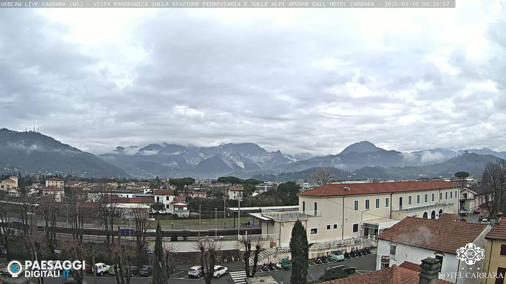 Carrara City Railway Station & Panaromic Natural Alps Park Live Cam - Massa & Carrara, Tuscany, Italy