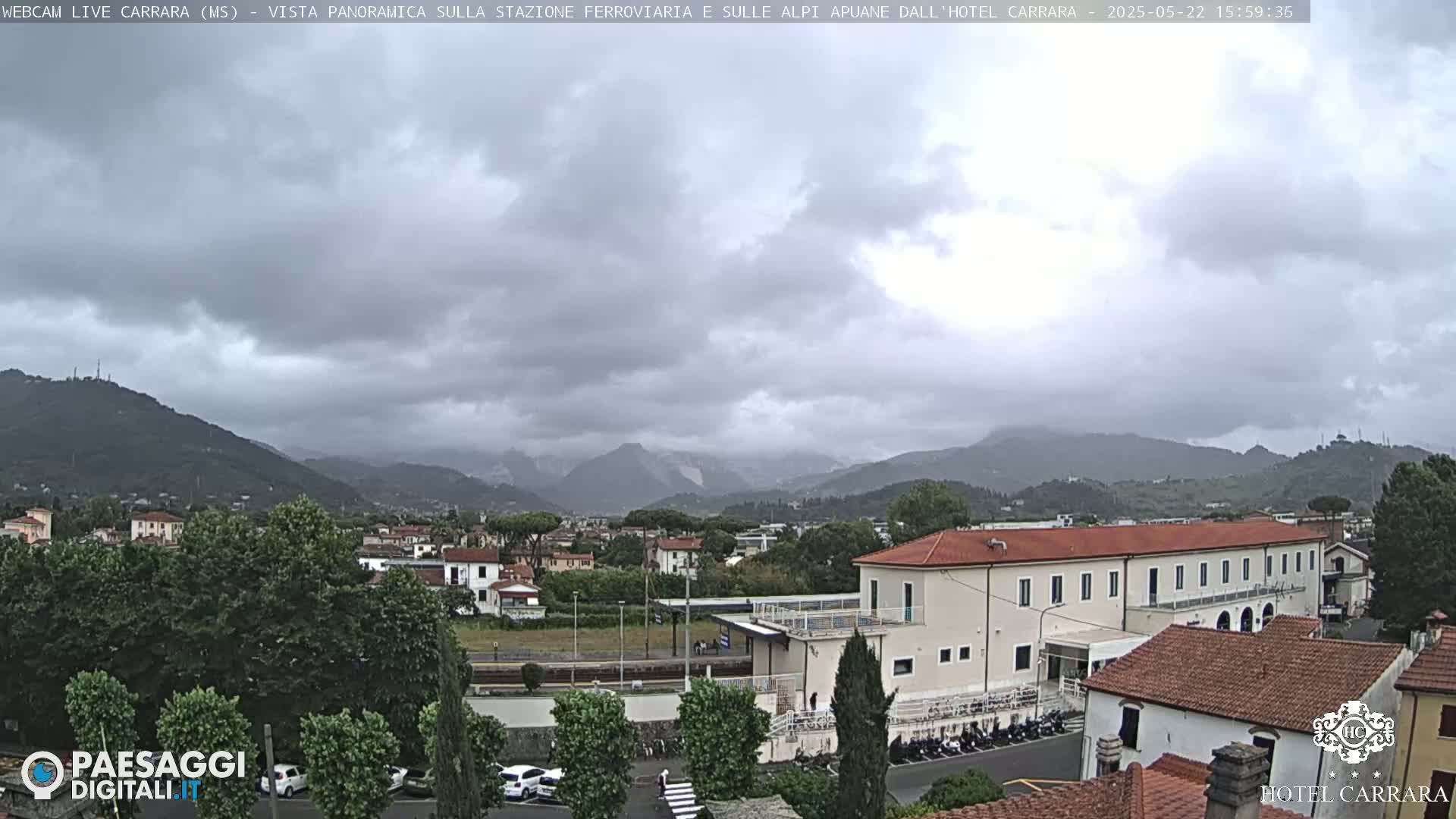 Carrara City Railway Station & Panaromic Natural Alps Park Live Cam - Massa & Carrara, Tuscany, Italy