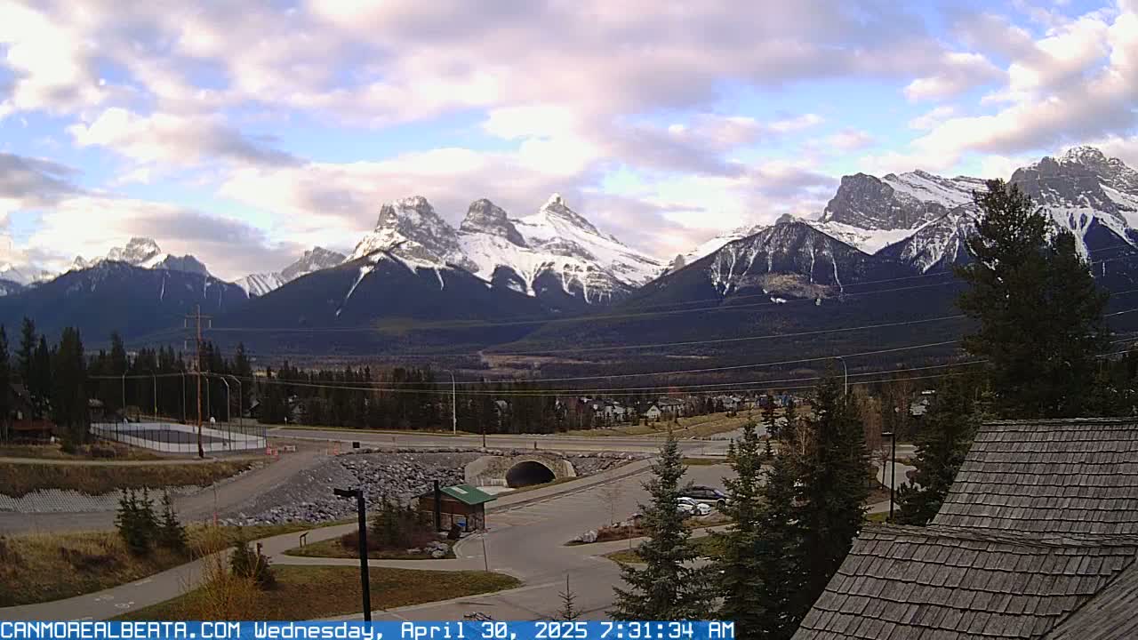 Canmore, Three Sisters Mountains View from Canmore City Live Cam - Canmore, Alberta's Rockies, Alberta, Canada