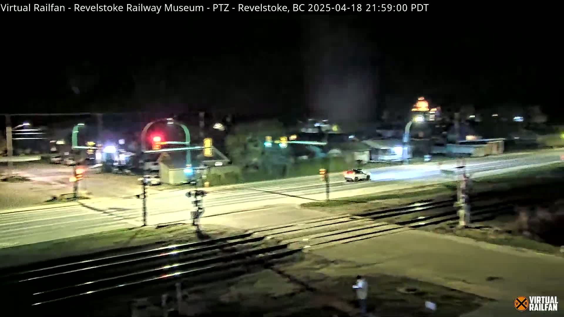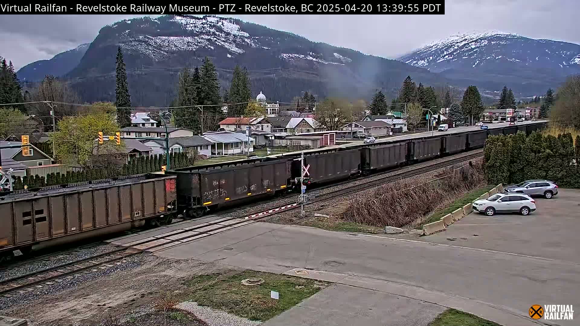Revelstoke City & Canadian Pacific Railway Railroad Crossing Live Cam - Revelstoke, Columbia-Shuswap, British Columbia, Canada PTZ | Virtual Railfan LIVE ! 2025-03-18 12:14