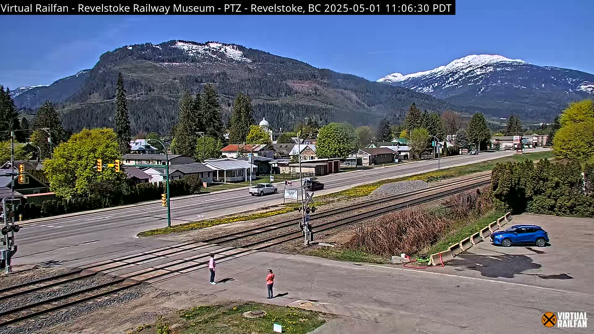 Revelstoke City & Canadian Pacific Railway Railroad Crossing Live Cam - Revelstoke, Columbia-Shuswap, British Columbia, Canada  PTZ | Virtual Railfan LIVE ! 2025-03-18 12:14