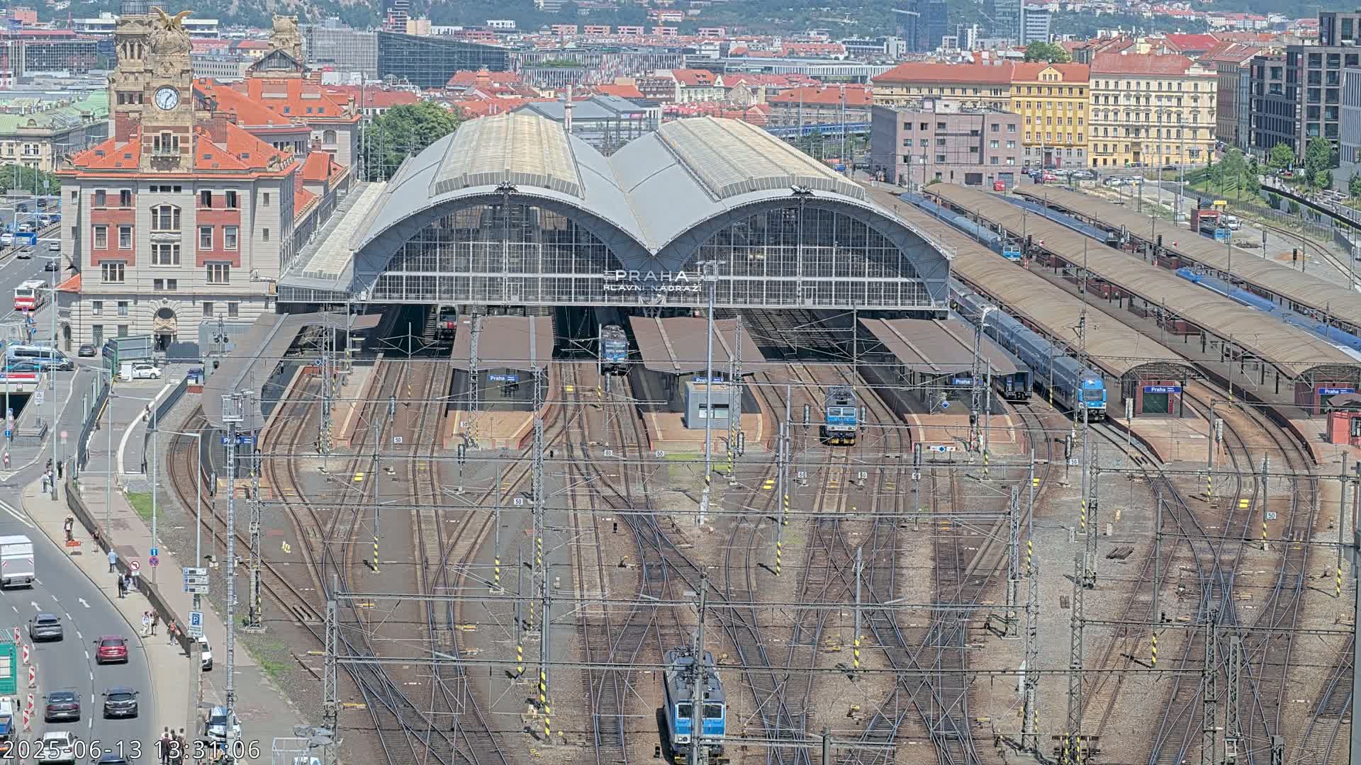 Prague Main Train Station Live Cam & Praha City Skyline Live Cam, (Praha Hlavní Nádraží)- Vinohrady, Prague, Czechia