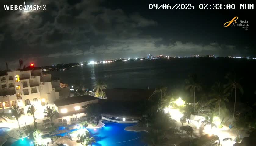 Cancún City Skyline & Carribean Coast from Fiesta Americana Live Cam - Zona Hotelera (Hotel Zone), Cancun, Quintana Roo, Mexico
